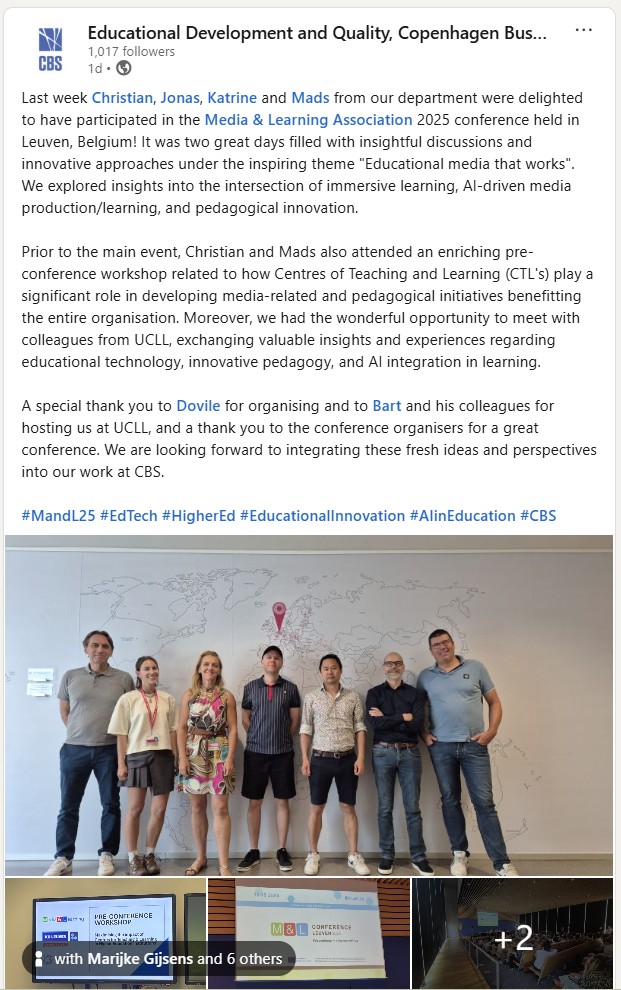 This is why the organisers of the 2025 Media & Learning conference have opted for the tagline Educational media that works as we believe it points to the importance of making the best-informed choices that we can when it comes to choosing and using media. This event, organised jointly with KU Leuven’s Learning Lab, was jam-packed with opportunities to share and learn from colleagues. Taking place in the historic city of Leuven in Belgium on 18-19 June 2025, this event brought together a vibrant community of educators, researchers, and innovators from different parts of Europe and beyond who are equally passionate about leveraging media in support of learning in higher education.