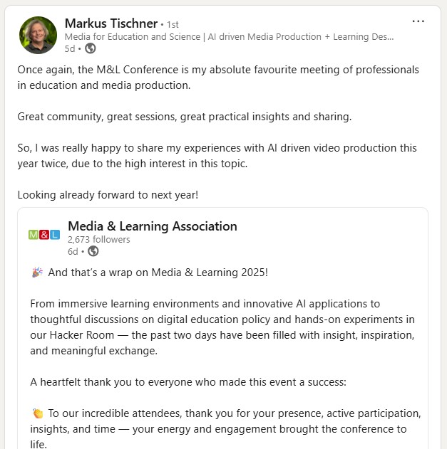 Educational media that works: Report from the M&L25 conference by Zac Woolfitt, Inholland University, The Netherlands.