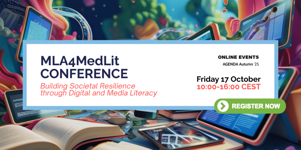 This year’s MLA4MedLit one-day online conference, taking place on Friday, 17th October, “Building Societal Resilience through Digital and Media Literacy for Everyone” takes its lead from a growing recognition that the very health of our democracies depends on an informed and engaged citizenry. At a time when digital platforms shape public debate and the flow of information, understanding how to participate, communicate, and exercise rights online is more critical than ever. The right to access media literacy is no longer simply a question for the educational sector, but one that affects society as a whole. Knowing how to manage our media environment, particularly in a world increasingly dominated by AI, requires cross-sector collaboration and a significant increase in resources and attention, bringing together activists, policy-makers and practitioners.