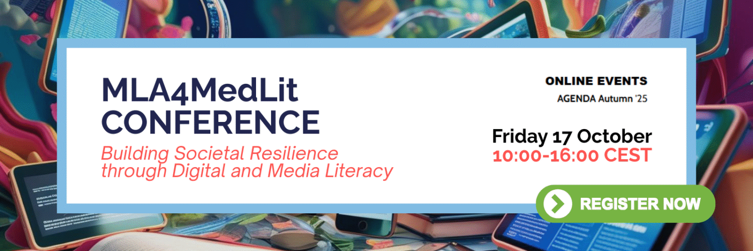 This year’s MLA4MedLit one-day online conference, taking place on Friday, 17th October, “Building Societal Resilience through Digital and Media Literacy for Everyone” takes its lead from a growing recognition that the very health of our democracies depends on an informed and engaged citizenry. At a time when digital platforms shape public debate and the flow of information, understanding how to participate, communicate, and exercise rights online is more critical than ever. The right to access media literacy is no longer simply a question for the educational sector, but one that affects society as a whole. Knowing how to manage our media environment, particularly in a world increasingly dominated by AI, requires cross-sector collaboration and a significant increase in resources and attention, bringing together activists, policy-makers and practitioners.