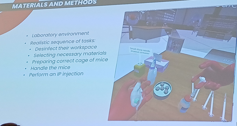 Eline Wydooghe, VIVES University of Applied Sciences, showed how they are using VR to practice laboratory experimentation on animals. In veterinary training at VIVES University in Belgium, they tackle ethical and educational challenges in laboratory skills development. Eline highlighted the “Three Rs” of laboratory experimentation on live animals (Replace, Reduce, Refine). Their VR simulations use Meta Quest 3 to reduce reliance on live animals, with students practicing realistic tasks, like injecting model mice.