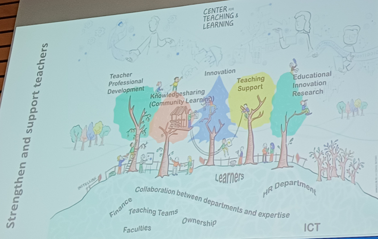 Nynke Kruiderink is Project Leader for the Centres for Teaching, Npuls, in the Netherlands. Nynke took us through the Dutch approach to Centers for Teaching & Learning at a national level. Npuls is an 8-year plan funded by the Dutch government to build an education sector that supports a resilient society, broad prosperity and a strong economy CTLs support five core functions: professional development, knowledge sharing, educational innovation, support, and research. If set up and deployed correctly they can create a positive meeting point to empower educators and encourage learning organizations. CTLs can use the SECI knowledge model to move between explicit and tacit knowledge. There was a pre-conference workshop on CTLs that was well received, though I could not attend.