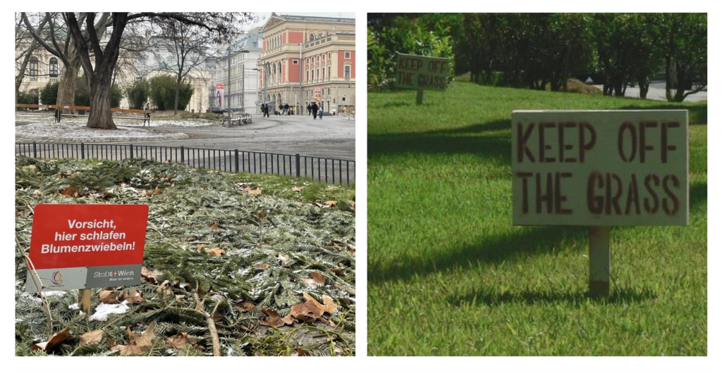 The sign in the left side of the picture: “Be careful, flower bulbs are sleeping here”