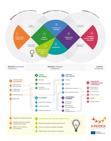 The Covid-19 pandemic accelerated digital transformation in education but exposed gaps in teachers’ pedagogical, social, and emotional use of digital tools. The D-PAIDEIA project addresses these gaps by updating the DigCompEdu framework, developing a dedicated training curriculum, and supporting schools in creating inclusive, whole-school digital pedagogical strategies.
