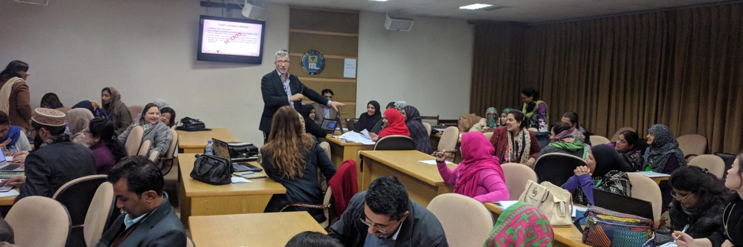 A four day international training course was organised at the National University of Modern Languages (NUML) Islamabad on 10-13 December. This course, entitled “New competence for online learning and teaching: activities for online tutors” was set up to provide a capacity building opportunity for teachers under the Erasmus+ capacity building project “Blended Learning Courses for Teacher Educators between Asia and Europe” (BLTeae). Prof. Dr. Sufiana Khatoon Malik, the country focal person of BLTeae in Pakistan, was the lead organiser for this training event.
