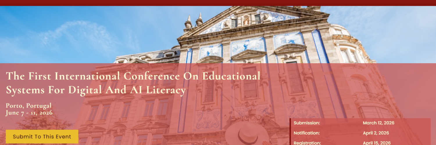 The First International Conference on Educational Systems for Digital and AI Literacy (EdAI 2026) will take place 7–11 June 2026 in Porto, Portugal (hybrid format), bringing together educators, researchers, policymakers and practitioners to explore how digital and AI literacy can be fostered across learning systems from early childhood to lifelong education.