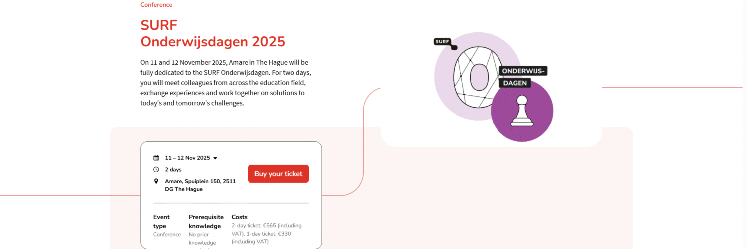 On 11 and 12 November 2025, Amare in The Hague will be fully dedicated to the SURF Onderwijsdagen. Over the course of two days, you will meet colleagues from across the education sector, exchange experiences, and work together on solutions to today’s and tomorrow’s challenges.
